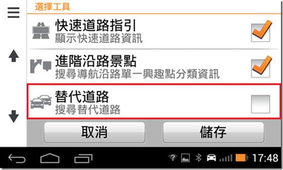 ⑤、之後點選『導航』時就不會在出現替代道路訊息了。